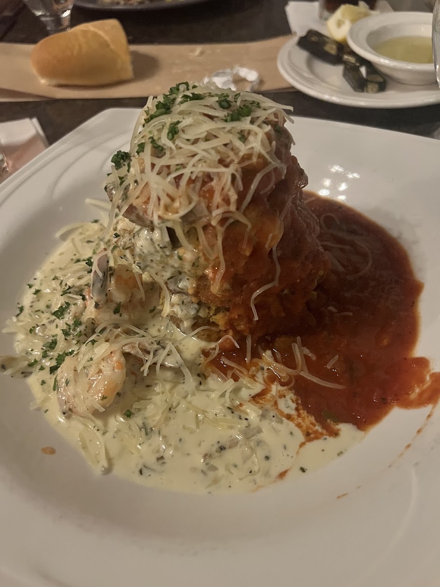 Good food, spinach salad with bacon balsamic was fresh, steak done to perfection, and crab cake was ok. Alfredo was tasty and zucchini was light but with the nice firmness. Paired well with a glass of cab. Great service nice atmosphere. Highly recommend.